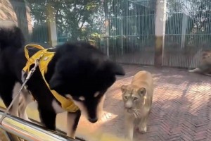 主人带狗去动物园,狮子一见就扑上来