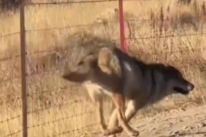 女子遇野狼偷羊,野狼轻松跳过护栏